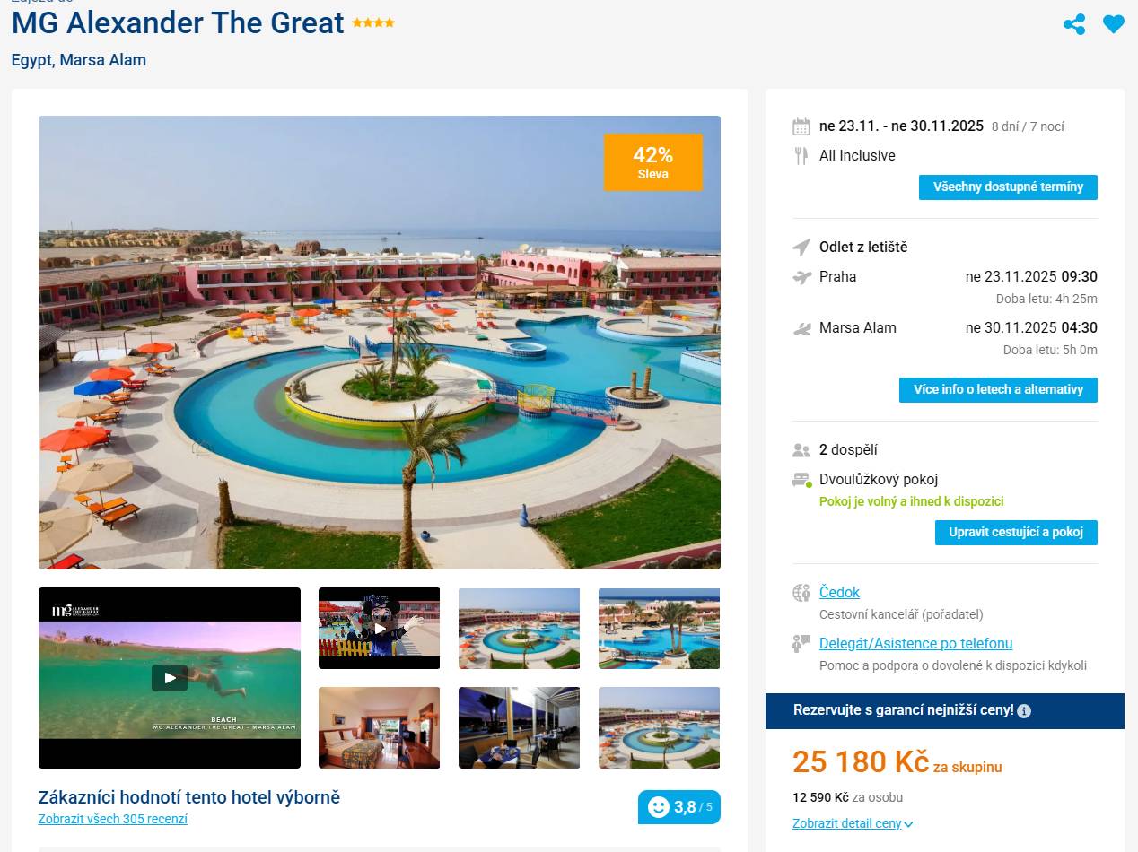Vydáte-li se do Marsa Alam, čeká vás dovolená plná barev, chutí a vůní Egypta. MG Alexander The Great nabízí komfortní ubytování, bazény, restaurace i spoustu aktivit. Stačí se jen ponořit do sluneční pohody.