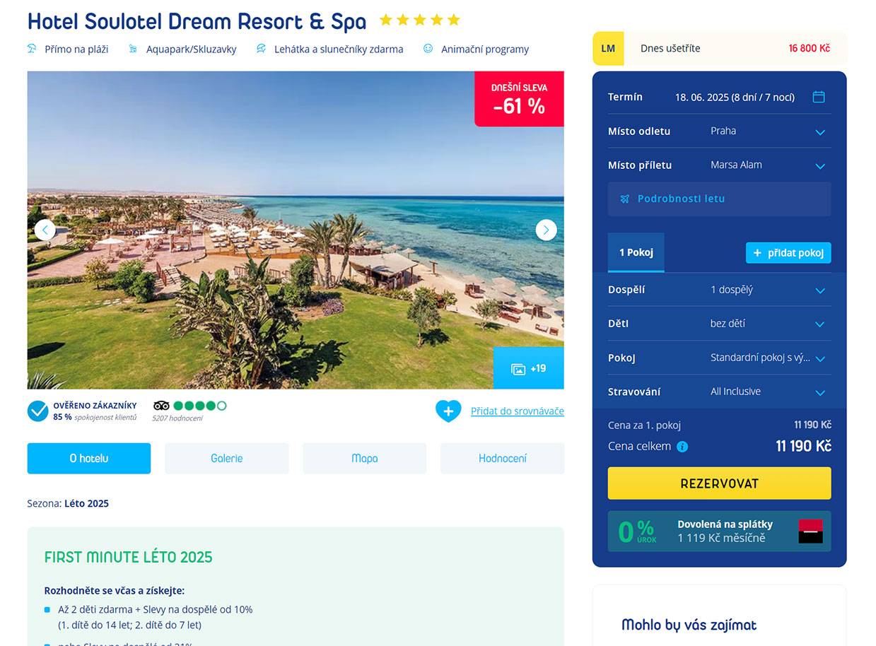 Egypt plný barev a klidu! 5★ Soulotel Dream Resort & Spa v Marsa Alam okouzlí korálovým útesem, all inclusive pohodou a klidem daleko od davů. Perfektní volba na červnový restart – šnorchl, relax a spousta slunce!