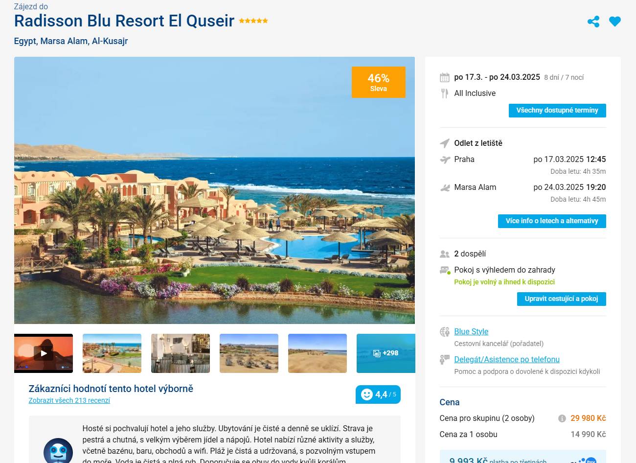 Užijte si luxusní dovolenou v Egyptě za skvělou cenu! Čeká na vás 8 dní plných slunce, šnorchlování u korálových útesů a odpočinku na nádherných písečných plážích.