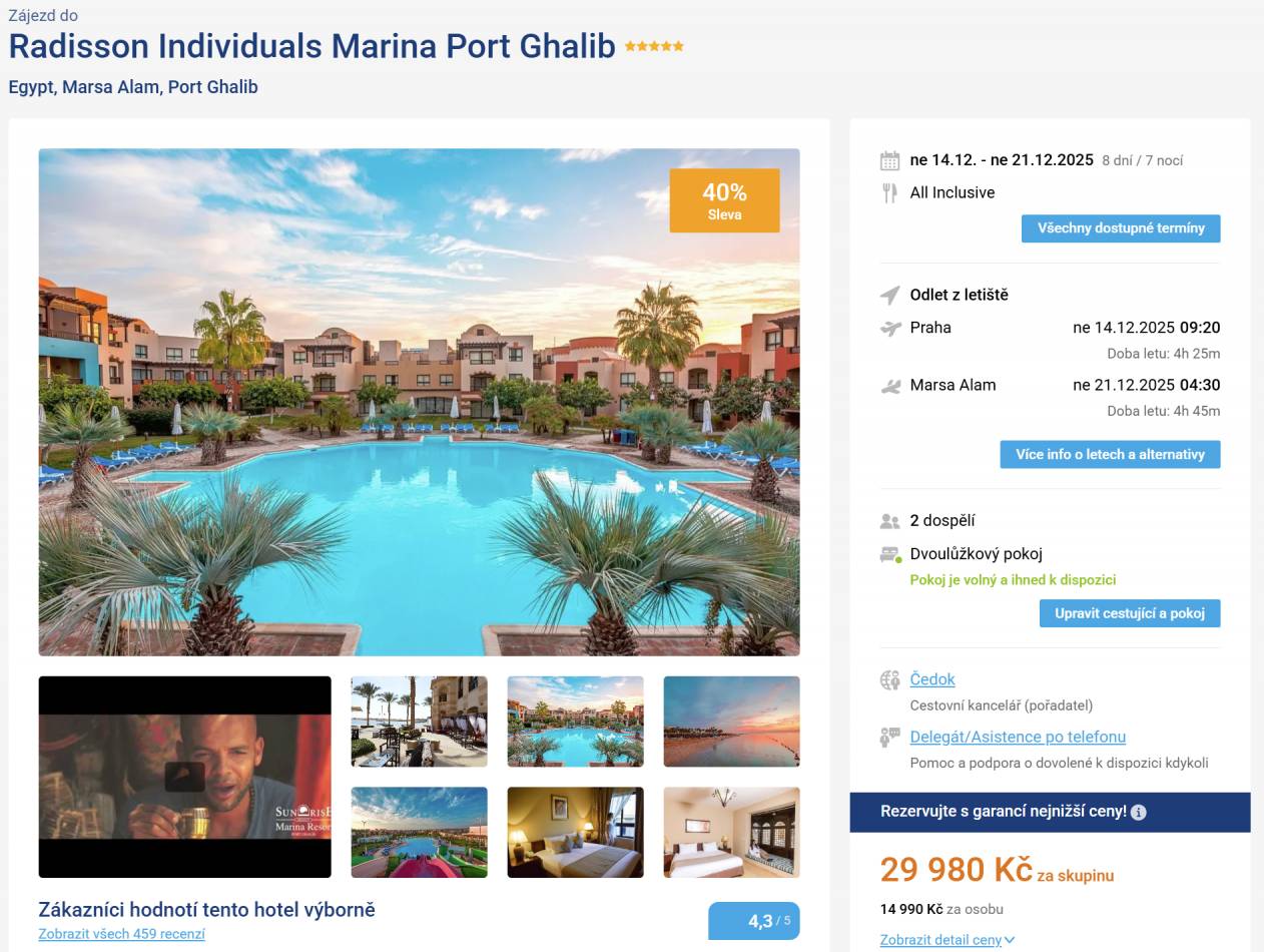 Vstupte do světa luxusu v Radisson Individuals Marina Port Ghalib v Marsa Alam. Očekávejte soukromou pláž, moderní pokoje, oázu wellness, osvěžující bazén a vynikající gastronomii. Zde se spojuje pohodlí a exotika, abyste zažili nezapomenutelný odpočinek.