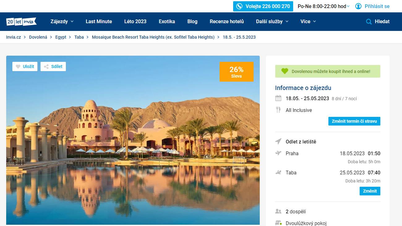 Egypt, Taba 5* letecky na 8 dní s all inclusive od 14 590 Kč!
