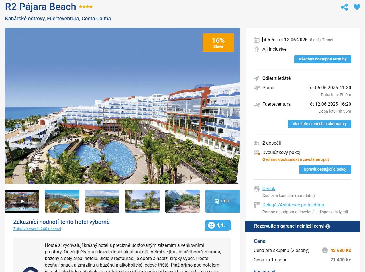 Chcete si opravdu odpočinout? Tento elegantní hotel přímo u pláže nabízí nekonečné výhledy na oceán, krásné bazény a prvotřídní all inclusive servis. Fuerteventura přivítá sluncem, klidem a atmosférou, kterou si zamilujete.