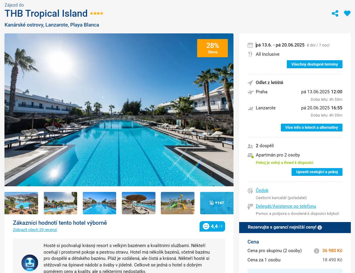 Slunce, moře a absolutní pohoda na vás čekají na Lanzarote! All inclusive, bazény, animační programy a relax v THB Tropical Island. Nenechte si to utéct – místa rychle mizí!
