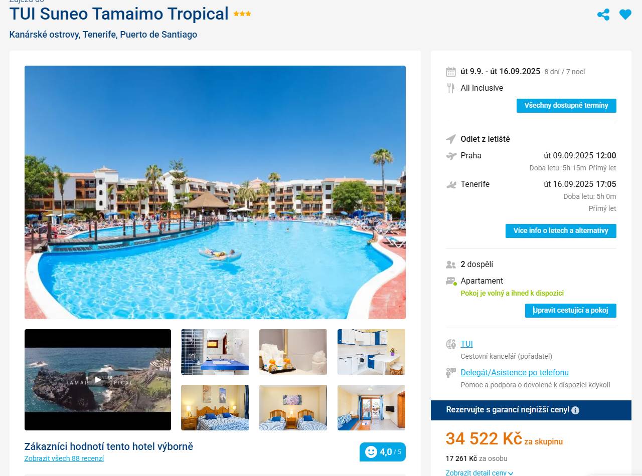 TUI Suneo Tamaimo Tropical 3* (Kanárské ostrovy, Tenerife)