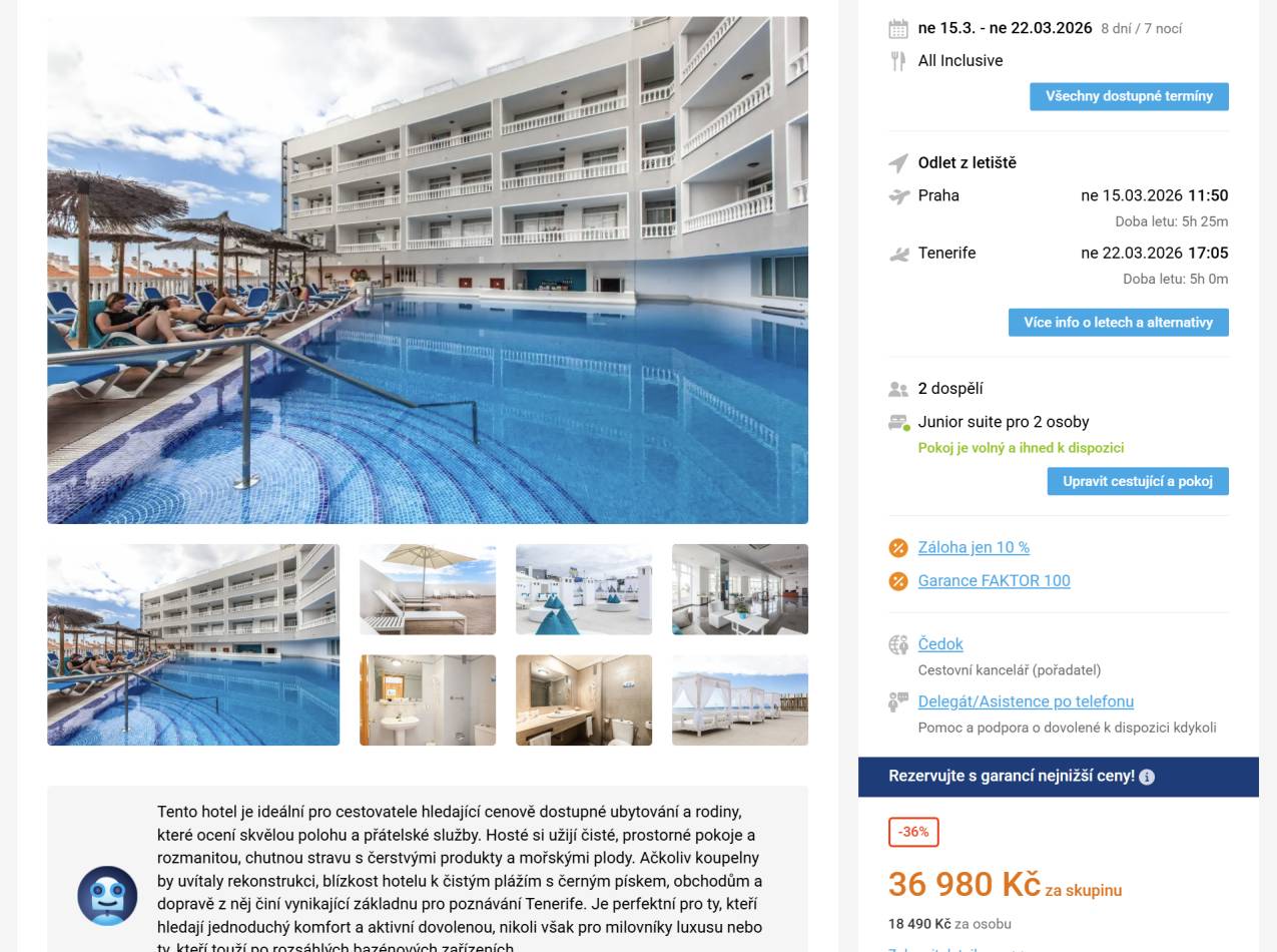 Kanárské ostrovy, Tenerife 4* letecky na 8 dní s all inclusive od 18 490 Kč!