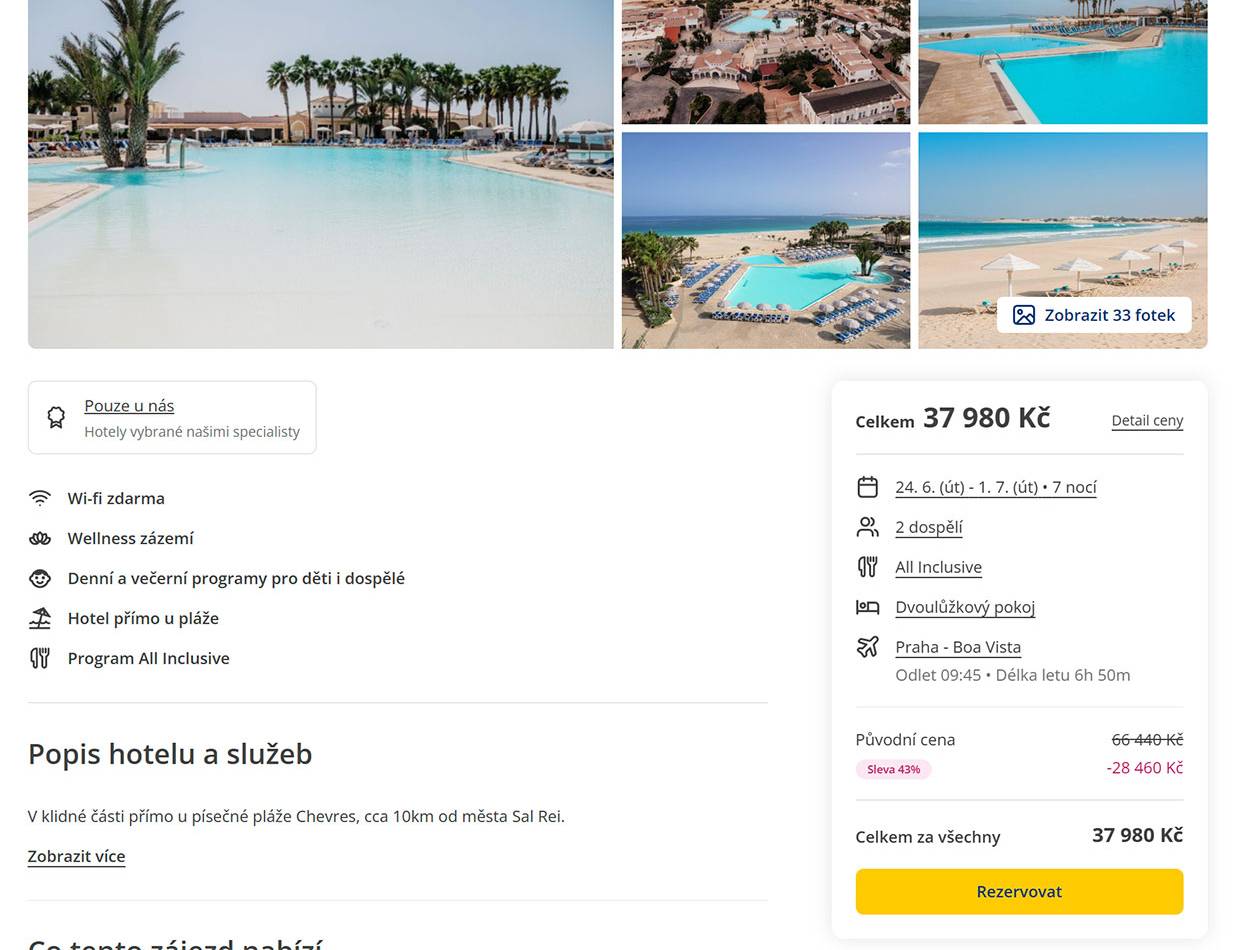Kapverdy volají. V hotelu VOI hotel Praia de Chaves si dopřejete luxusní all inclusive přímo u nekonečné pláže s jemným pískem a tyrkysovým oceánem. Čeká vás klid, slunce, výborné jídlo, a přitom jen pár hodin letu z Evropy.