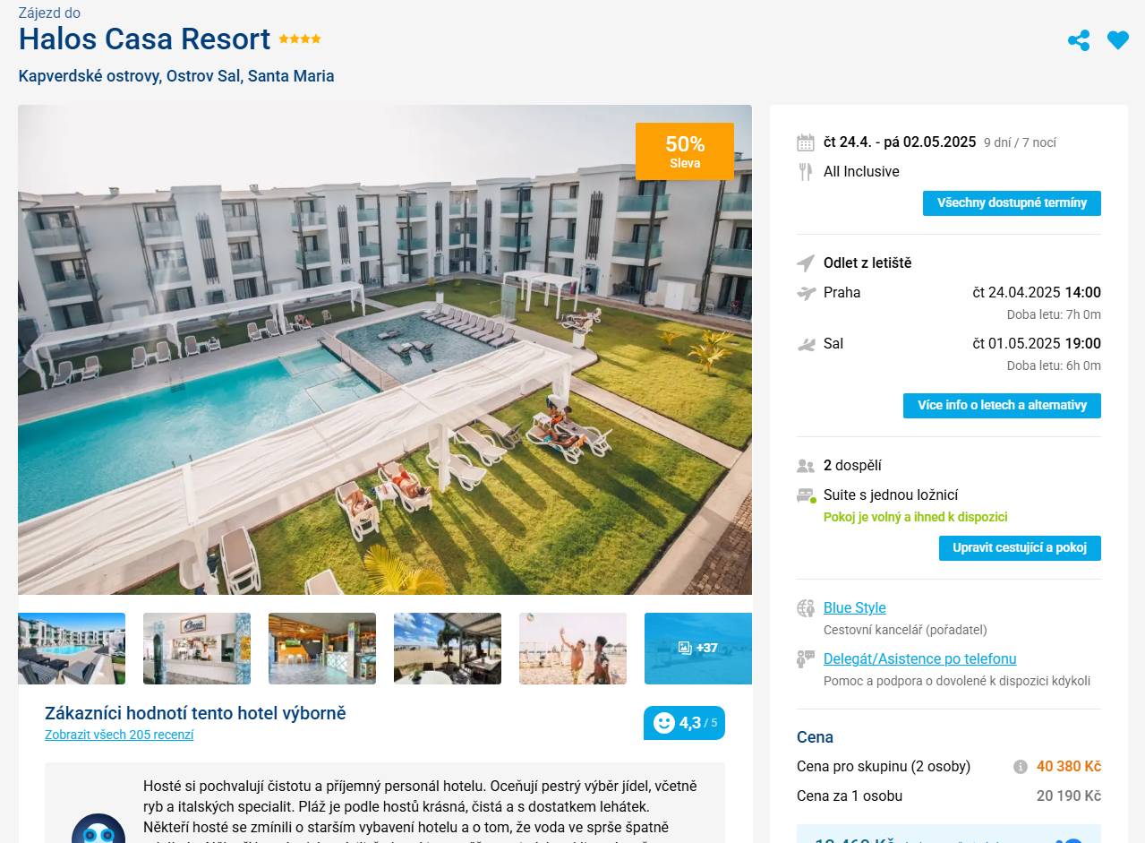 Hledáte únik z každodenního shonu? Užijte si nezapomenutelný pobyt v Halos Casa Resort na ostrově Sal. Resort nabízí ubytování pár kroků od pláže, kde můžete relaxovat na slunci, vychutnat si osvěžující koktejly a užít si klidné vlny Atlantského oceánu.