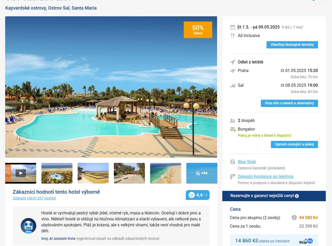 Kapverdské ostrovy, Ostrov Sal 4* letecky na 9 dní s all inclusive od 22 290 Kč!