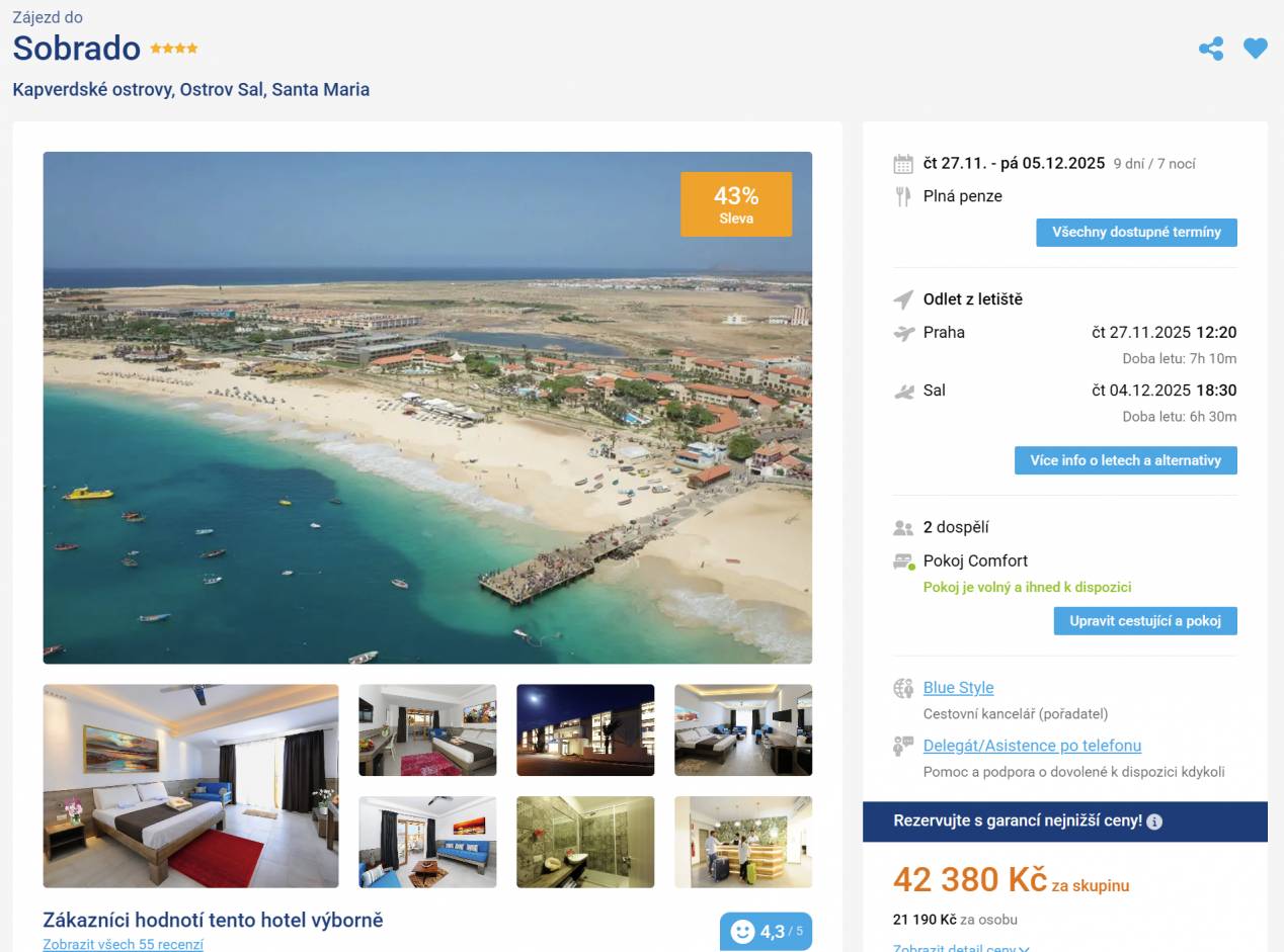 Kapverdské ostrovy – místo, kde se čas zpomalí a starosti mizí s větrem od oceánu. Ostrov Sal a hotel Sobrado lákají na sluncem zalité dny, šumění moře a večery plné rytmů kapverdské hudby. Exotika, která má duši!