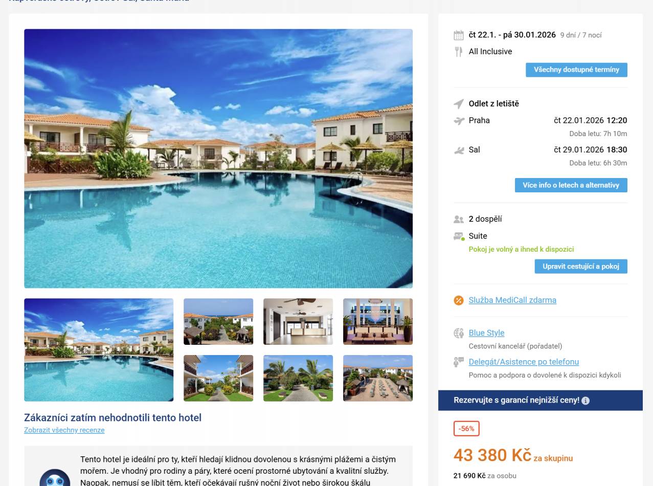 Kapverdské ostrovy, Ostrov Sal 5* letecky na 9 dní s all inclusive od 21 690 Kč!