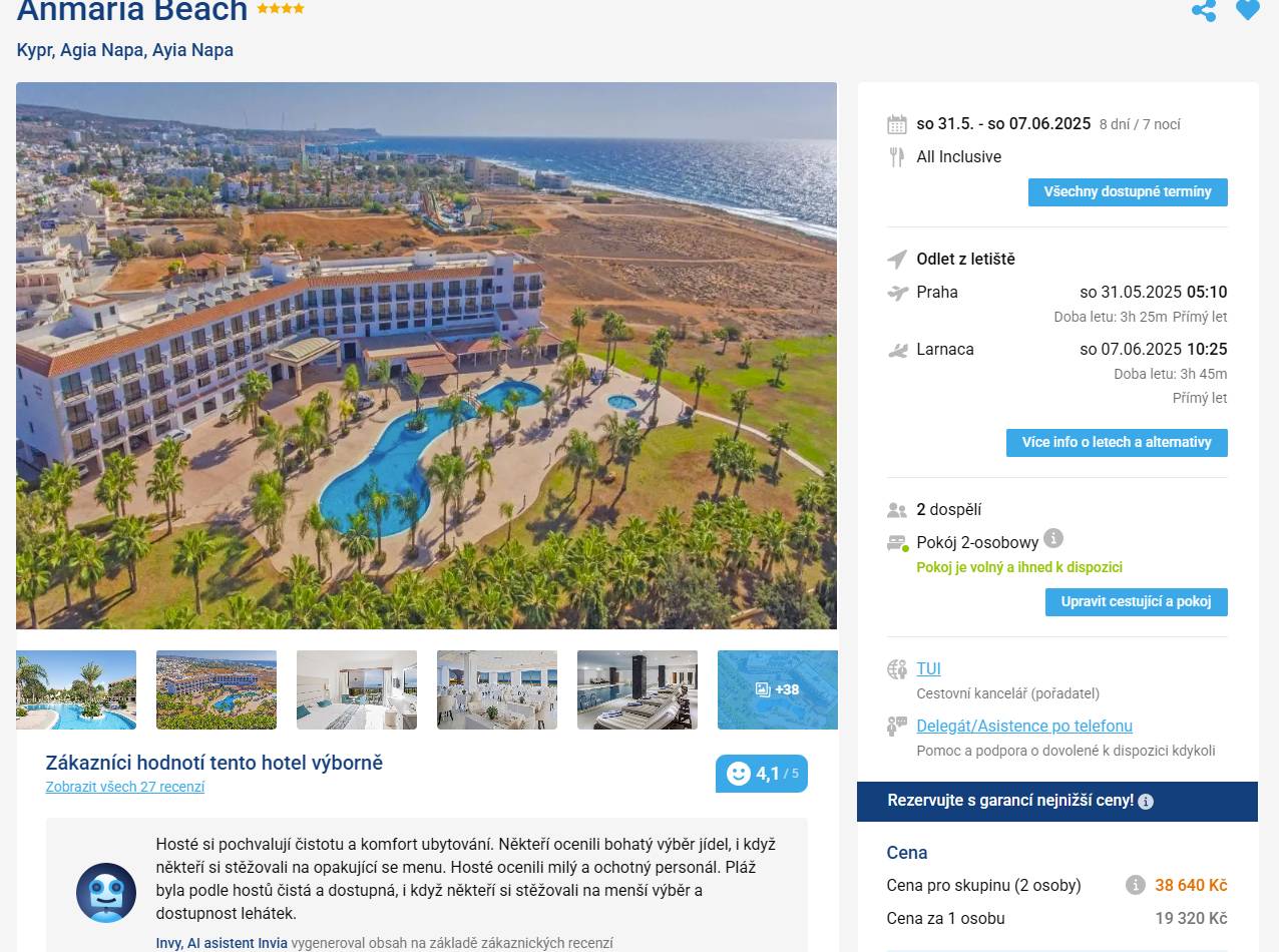 Kypr, Agia Napa 4* letecky na 8 dní s all inclusive od 19 320 Kč!
