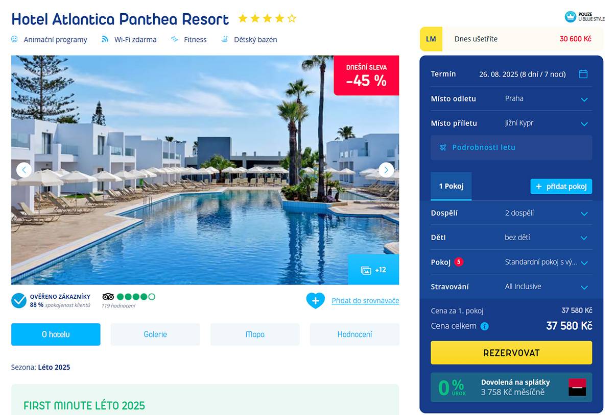 Užijte si nezapomenutelnou dovolenou v Atlantica Panthea Resort v krásné Agia Napě! Čekají na vás křišťálově čisté pláže, skvělé all-inclusive služby a bazénový komplex se skluzavkami pro dokonalou relaxaci i zábavu.