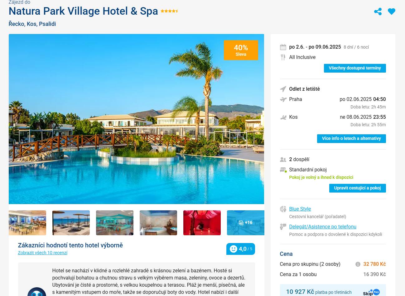 Dopřejte si luxusní dovolenou v Natura Park Village Hotel & Spa, kde vás čeká dokonalá harmonie komfortu a přírody. Užijte si křišťálově čisté moře, stylové ubytování a prvotřídní wellness. Ideální místo pro odpočinek i romantiku!