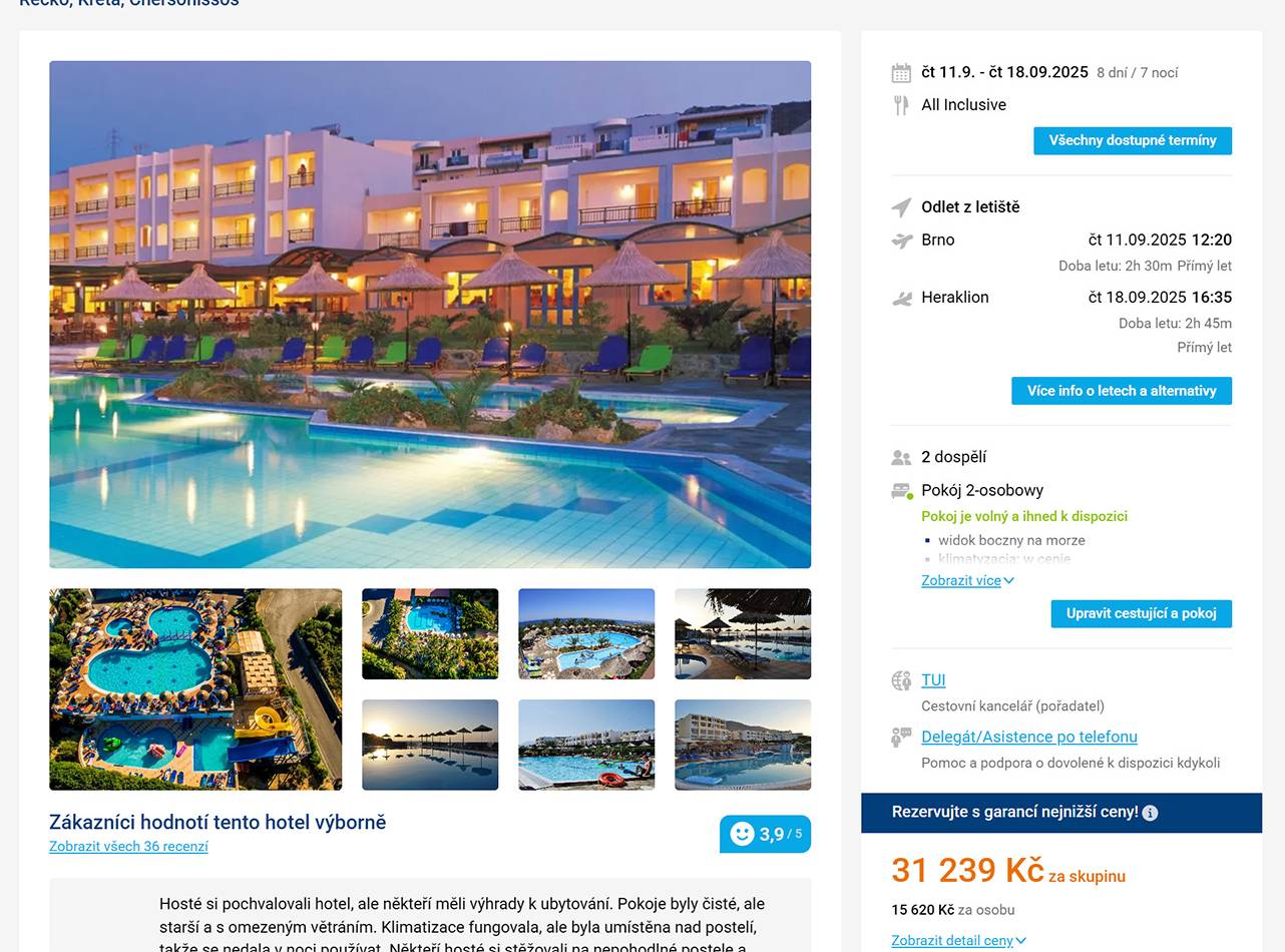 Užijte si pohodovou dovolenou v Hersonissosu! Komfortní pokoje s výhledem na moře, dva bazény a wellness centrum vám zajistí odpočinek. Lahodná řecká kuchyně a čisté ubytování jsou samozřejmostí.