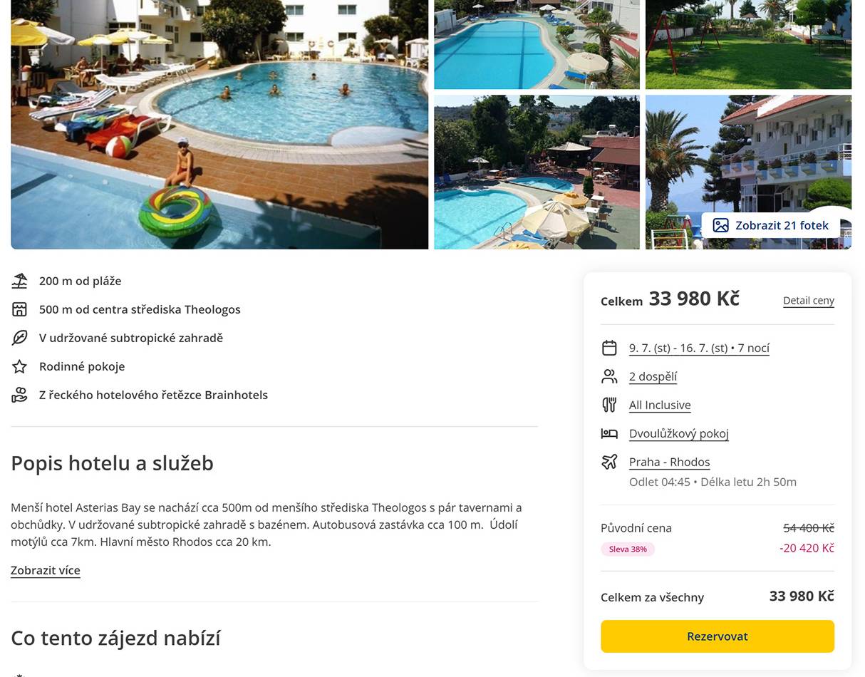 Řecko, Rhodos 3* letecky na 8 dní s all inclusive od 16 990 Kč!