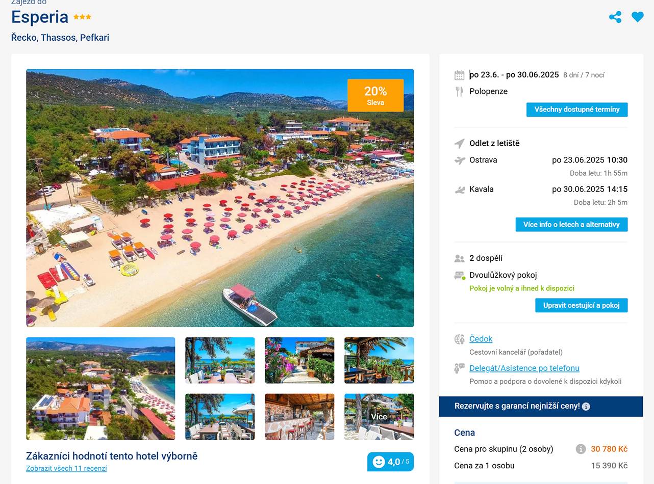 Řecko, Thassos 3* letecky na 8 dní s polopenzí od 15 390 Kč!