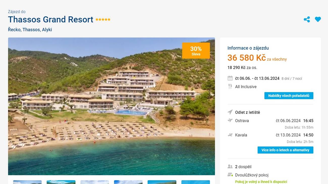 Řecko, Thassos 5* letecky na 8 dní s all inclusive od 18 290 Kč!