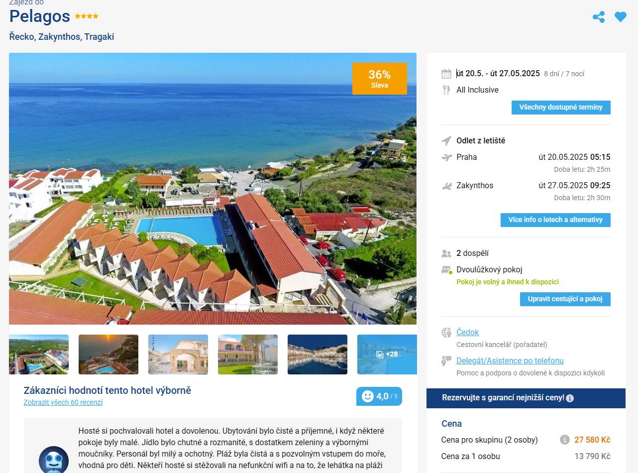 Řecko, jak ho milujeme – s vůní moře, klidem ostrova a šumem olivovníků! Objev kouzlo Zakynthosu v oblíbeném hotelu Pelagos, jen pár kroků od pláže a s rodinnou atmosférou, kterou si zamiluješ. Ideální volba pro klidnou dovolenou ve dvou.