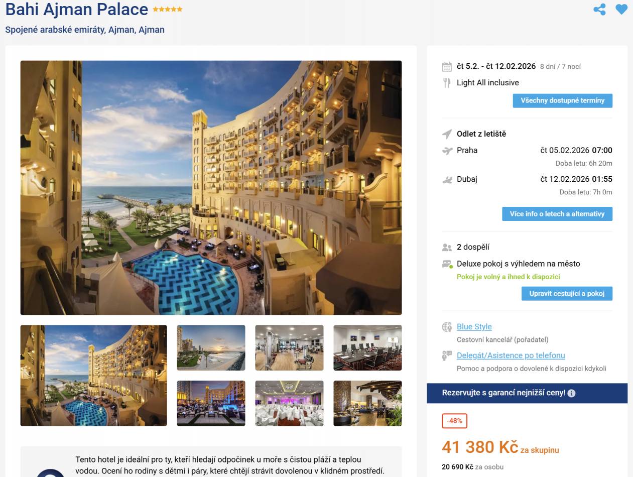 Spojené arabské emiráty, Ajman 5* letecky na 8 dní s light all inclusive od 20 690 Kč!