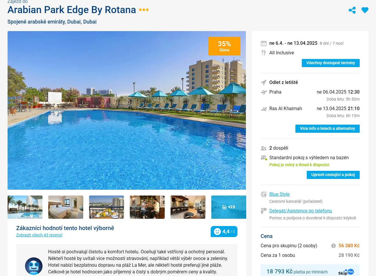 Spojené arabské emiráty, Dubai 4* letecky na 8 dní s all inclusive od 28 190 Kč!