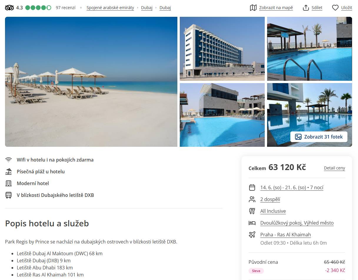 Moderní hotel Park Regis by Prince – Dubai Islands nabízí klidné prostředí ostrovů a zároveň skvělou dostupnost do centra Dubaje. Relax u pláže, infinity bazén s výhledem, all inclusive servis a arabský luxus, který nepřestane bavit.