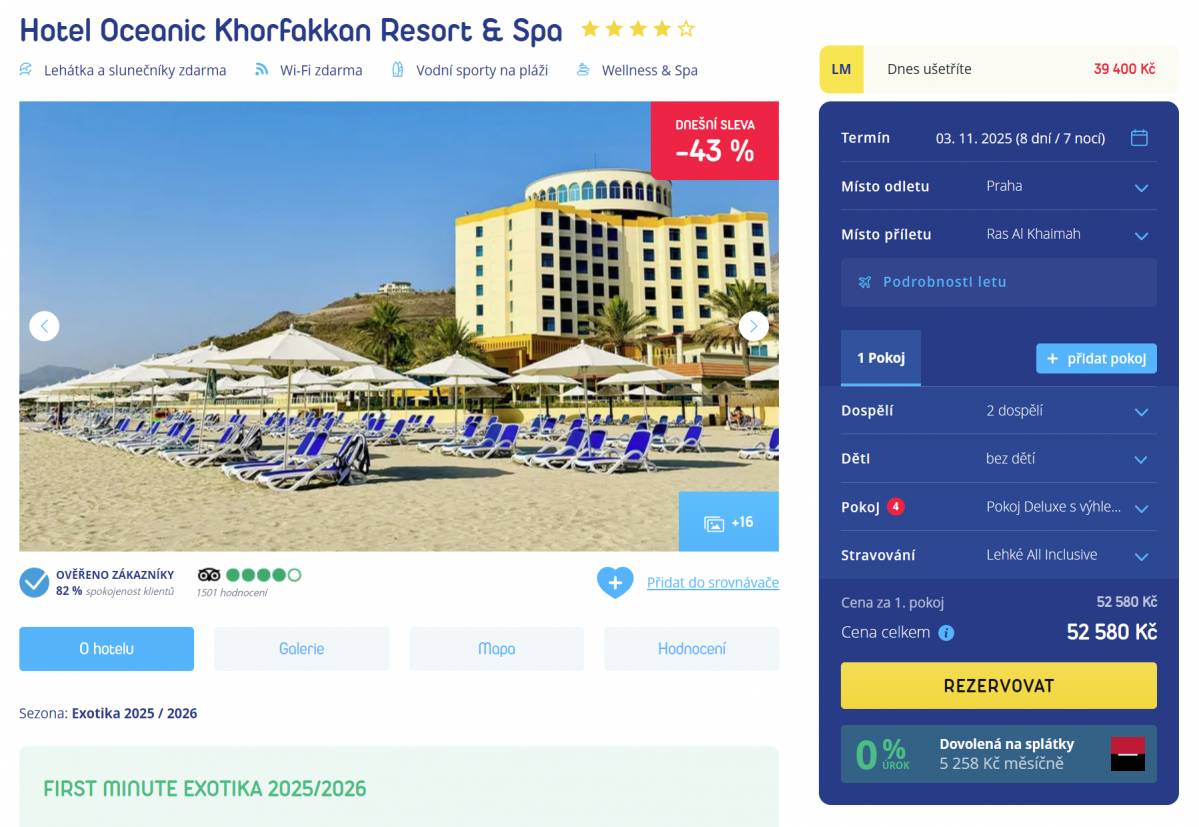 Spojené arabské emiráty, Fujairah 4* letecky na 9 dní s light all inclusive od 26 290 Kč!