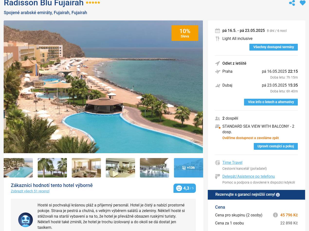 Spojené arabské emiráty, Fujairah 5* letecky na 8 dní s light all inclusive od 22 898 Kč!