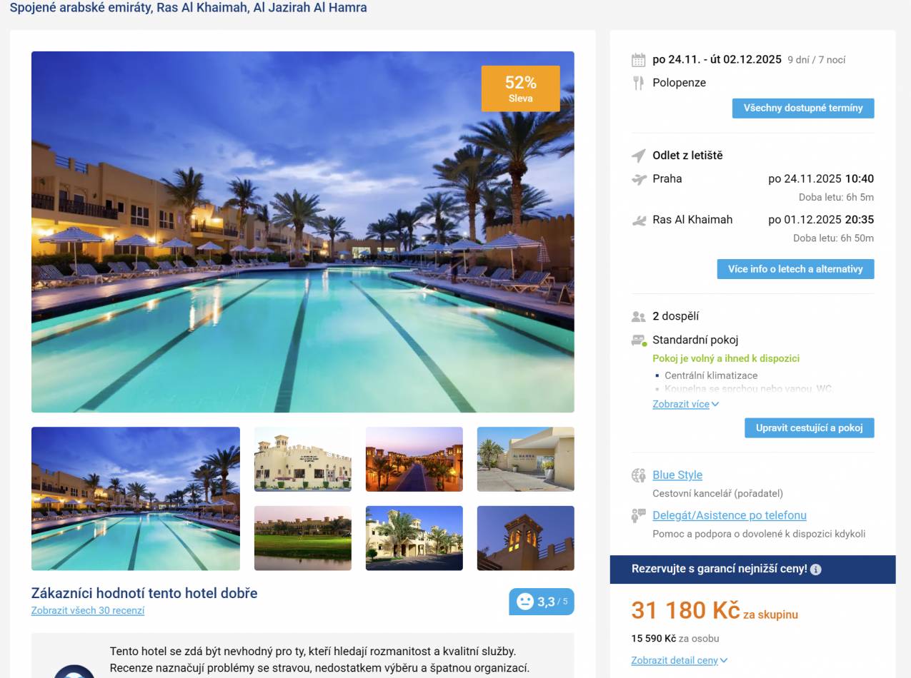 Spojené arabské emiráty, Ras Al Khaimah 4* letecky na 9 dní s polopenzí od 15 590 Kč!
