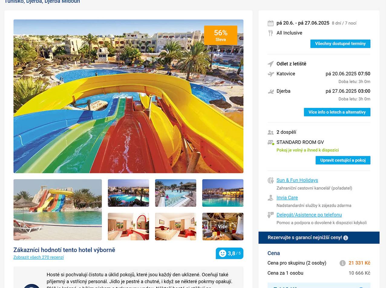 Tunisko, Djerba 3,5* letecky na 8 dní s all inclusive od 10 666 Kč!