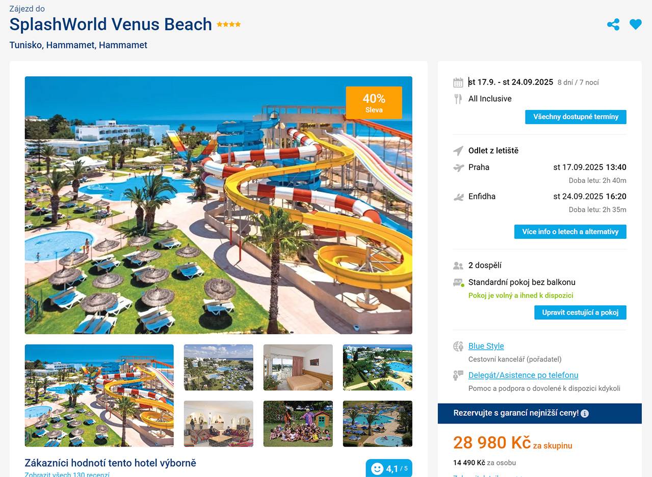 SplashWorld Venus Beach 4* (Tunisko, Hammamet)