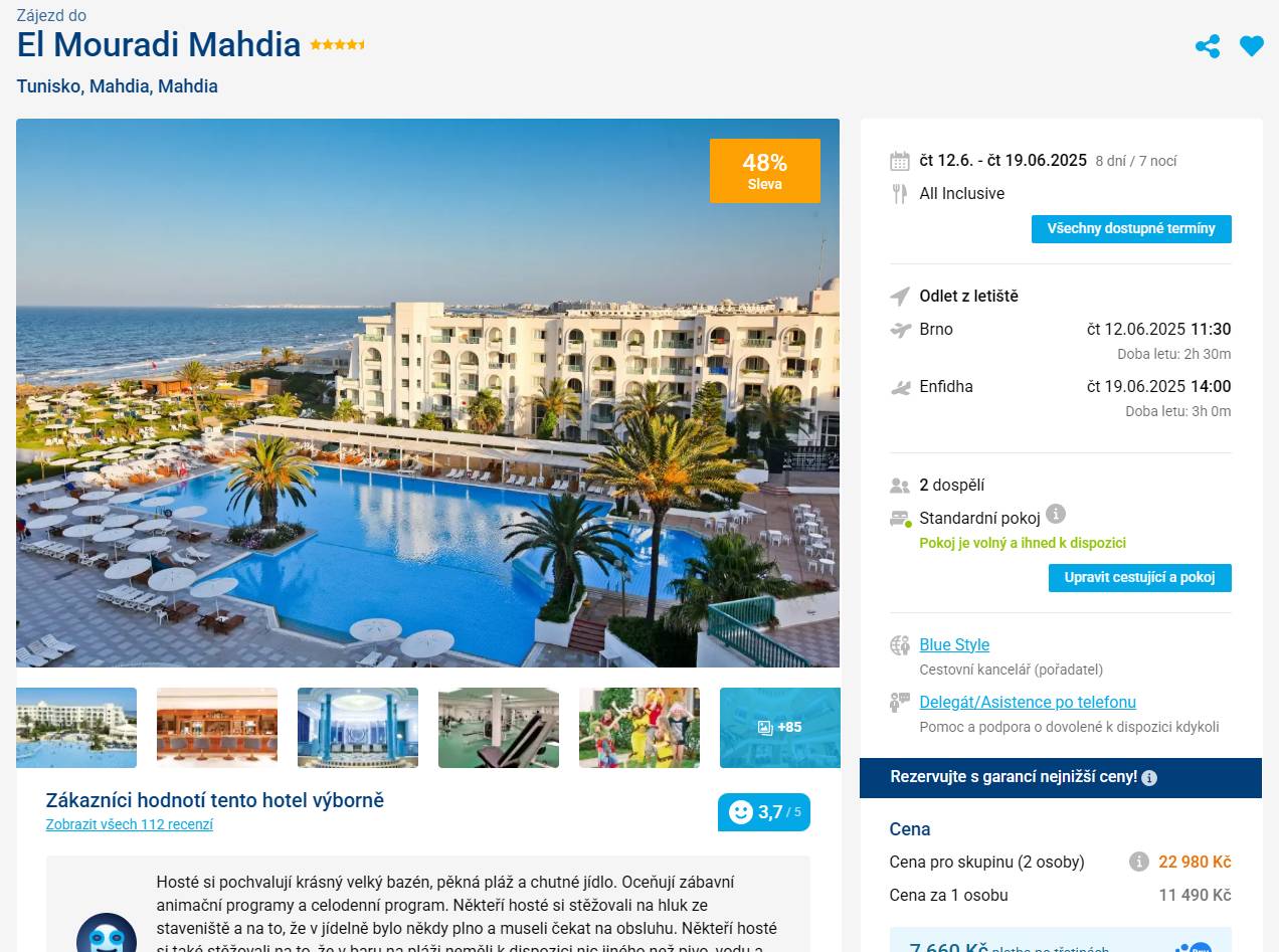 Užijte si odpočinek v oblíbeném tuniském letovisku Mahdia. Hotel El Mouradi Mahdia nabízí přímý vstup na písčitou pláž, bazény, wellness centrum i pestrý program pro děti. Ideální volba pro páry i rodiny – s all inclusive a pohodlnými pokoji.