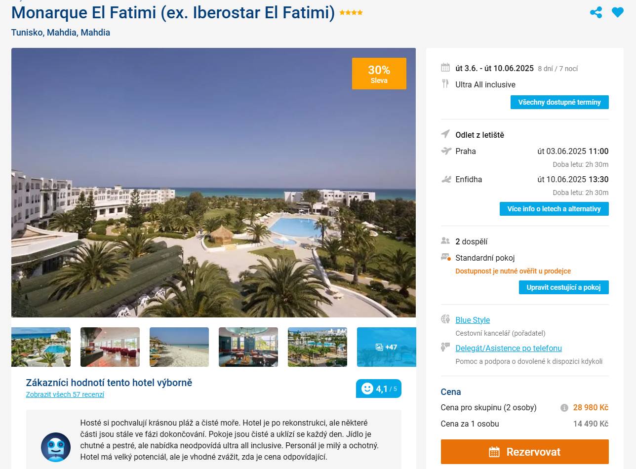 Monarque El Fatimi (ex. Iberostar El Fatimi) 4* (Tunisko, Mahdia)