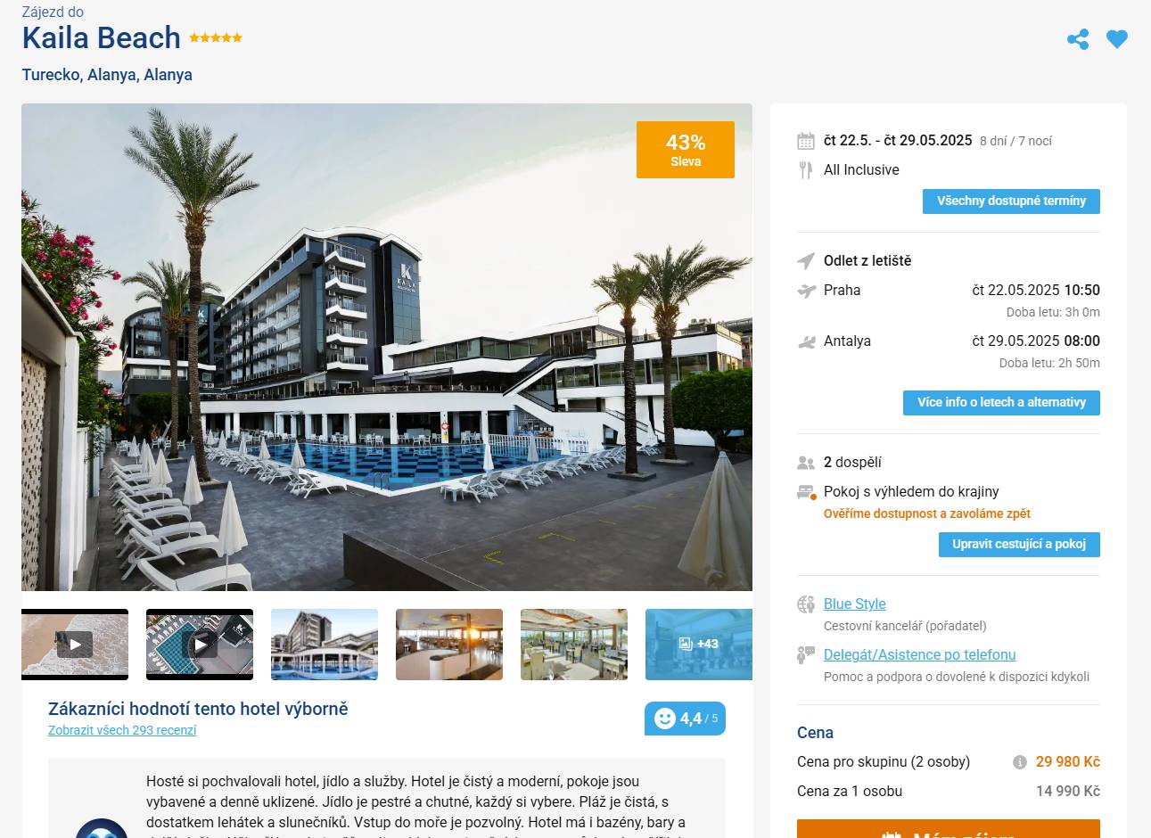 Zamiřte do Turecka, konkrétně do Alanye a objevte hotel Kaila Beach. Těšte se na luxusní all-inclusive dovolenou, kde si odpočinete pod slunečníky na písečné pláži, vychutnáte lahodné speciality a osvěžíte se v bazénech nebo v moři.