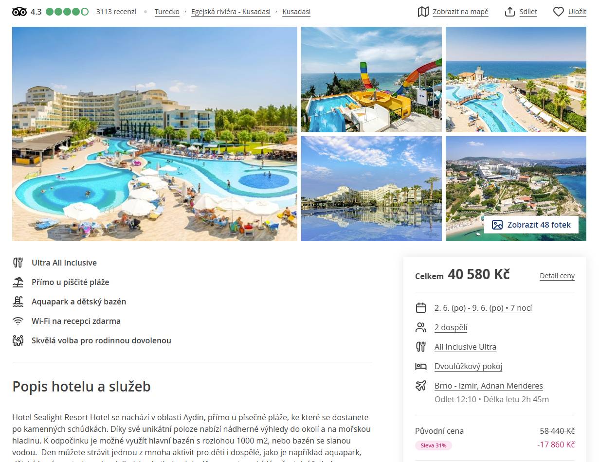 Užijte si nezapomenutnou dovolenou na pobřeží Egejského moře! Pětihvězdičkový Otium Sealight Beach Resort v letovisku Kusadasi nabízí komfortní ubytování, all inclusive služby, soukromou pláž, několik bazénů i zábavu pro děti i dospělé.