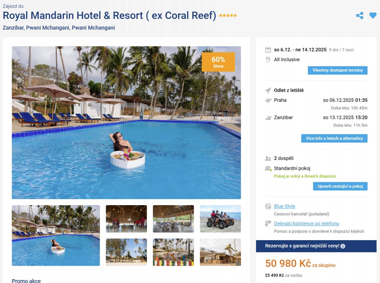 Občas se stane, že narazíte na resort, kde si hned řeknete „jo, tady zůstanu“. V Royal Mandarin na Zanzibaru to přijde docela rychle – bílá pláž, příjemná atmosféra a moře, které láká každý den.