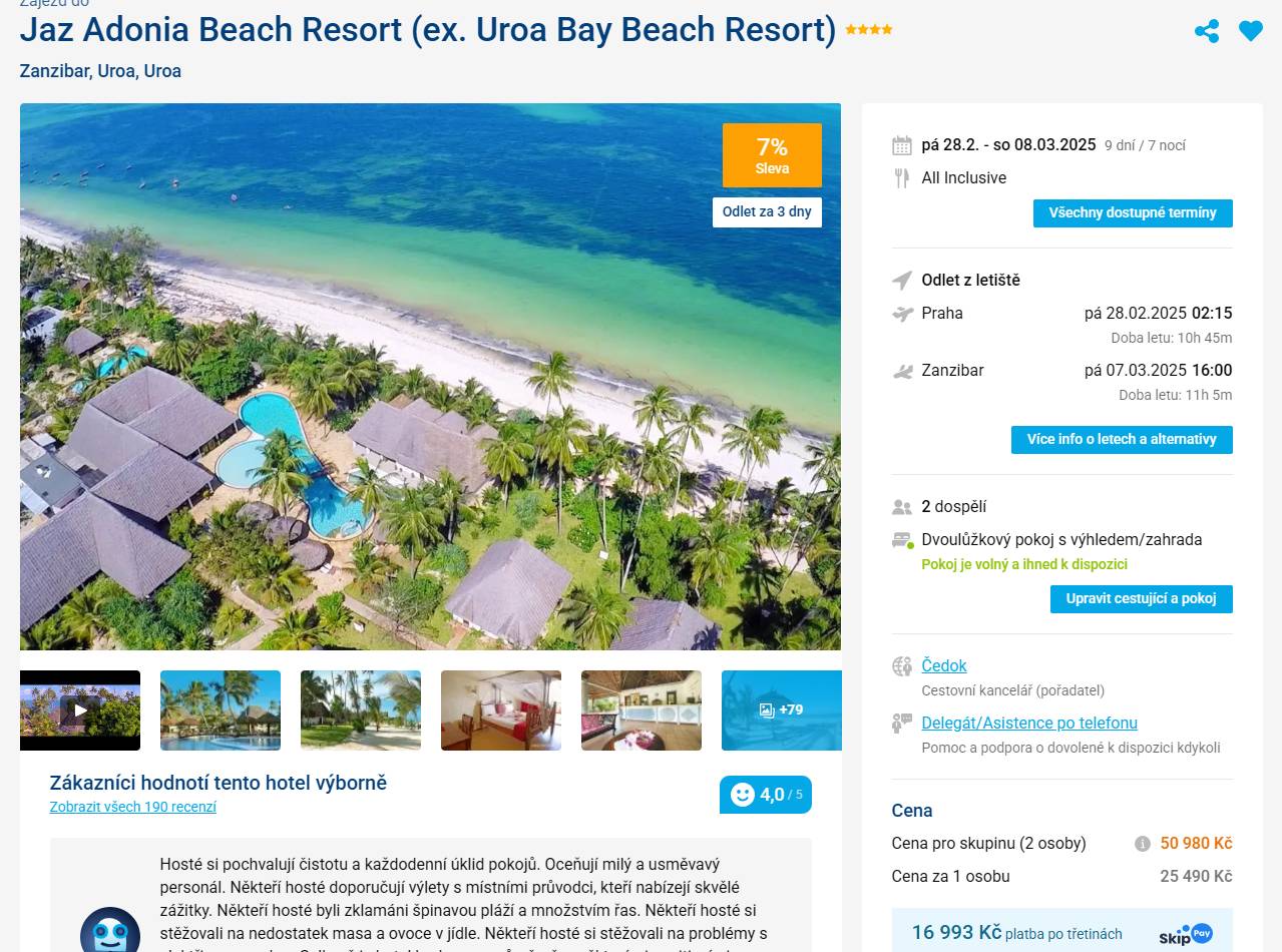 Zanzibar, Uroa 4* letecky na 9 dní s all inclusive od 25 490 Kč!