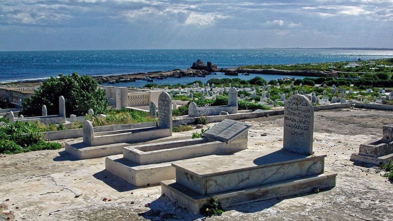 Nedaleko od Velké Mešity, na výběžku tolik typickém pro Mahdii, se nachází námořní hřbitov charakteristický svými bílými, na vlas podobnými, náhrobky. Svou přítomností zde můžete projevit úctu utopeným námořníkům a nasávat zvláštní atmosféru, kterou umocňuje bití vln o pobřeží. Na samotném konci výběžku stojí mahdijský maják „Cape Africa“, odkud budete mít skvělý výhled na širé moře.