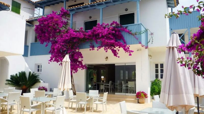 - Hotel se nachází přímo u pláže Perastikos, která je oceněna symbolem Modré vlajky.